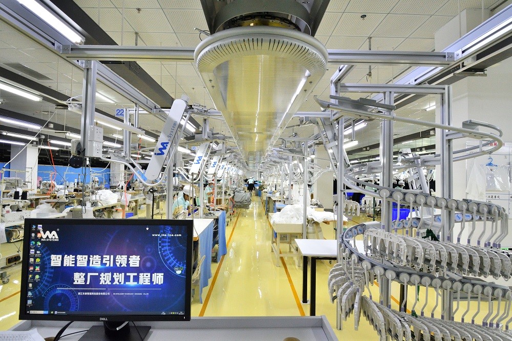 除了面料染色的智能化改造,圍繞服裝的設(shè)計(jì)、研發(fā)、生產(chǎn),元首集團(tuán)也正在加快變革,通過探索和引進(jìn)自動(dòng)化縫制單元、智能吊掛系統(tǒng)、柔性整燙系統(tǒng)、自動(dòng)立體倉(cāng)儲(chǔ)和物流配送系統(tǒng),建立生產(chǎn)流程的MES系統(tǒng)管理,提高生產(chǎn)效率。